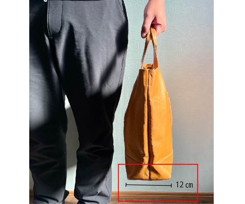 マチが約12cmあるのでお弁当箱や書類などもしっかり収納できます。