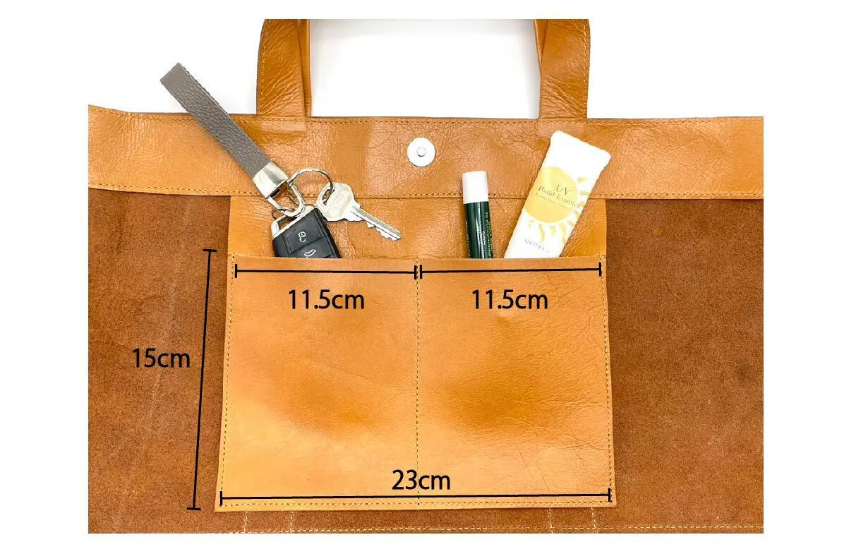 本革は重いイメージがあるかもしれませんが、『まいにちレザートート』は薄く軽い革を採用。そのため、本革ながら400gと嬉しい軽さです。そして裏地が必要ない加工により、軽量に仕上がっています。(革の厚みは均一ではないため、すべて同じ重さではありません。)