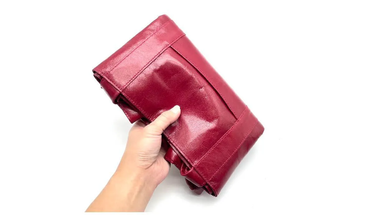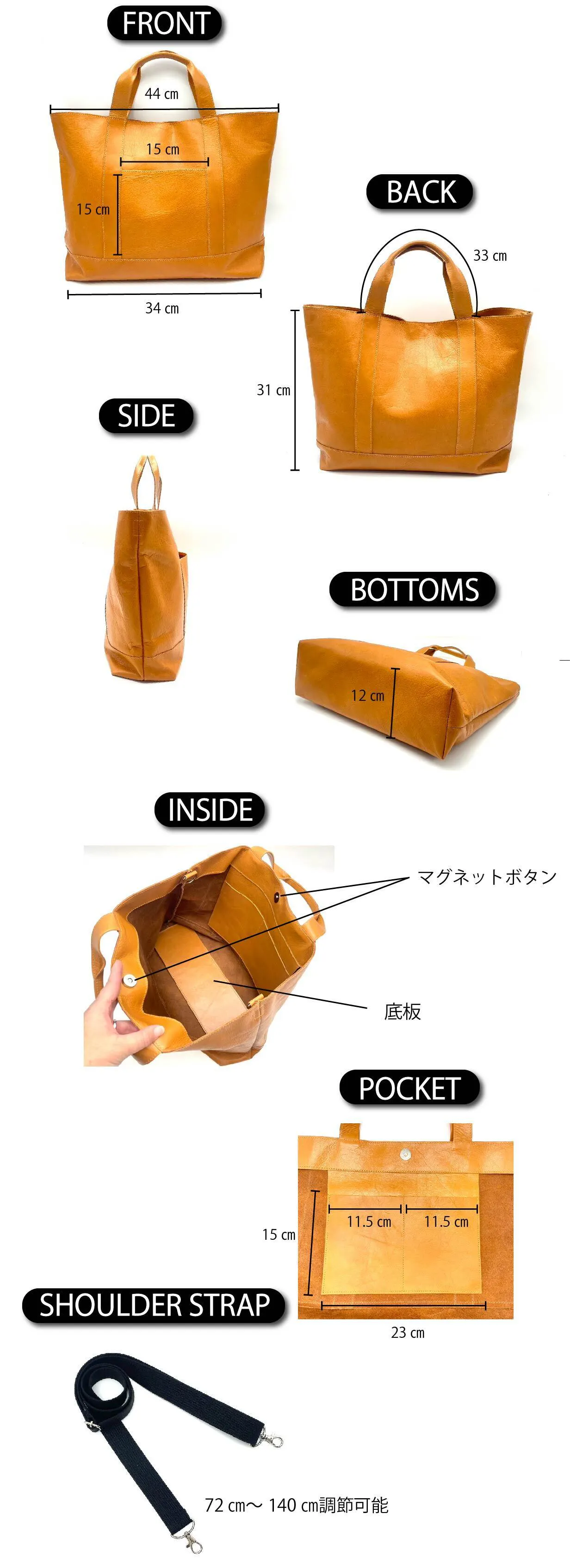 柔らかい革なので、底板を外すとコンパクトにまとめることができ、折り畳みも可能です。旅行やサブバッグとしても◎。