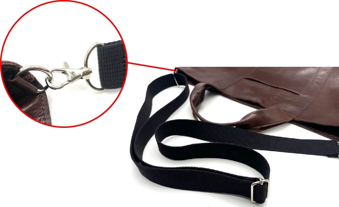 接続部分のDカンはショルダー紐を使わない時は正面から見えないようにしました。見た目の美しさにも配慮。