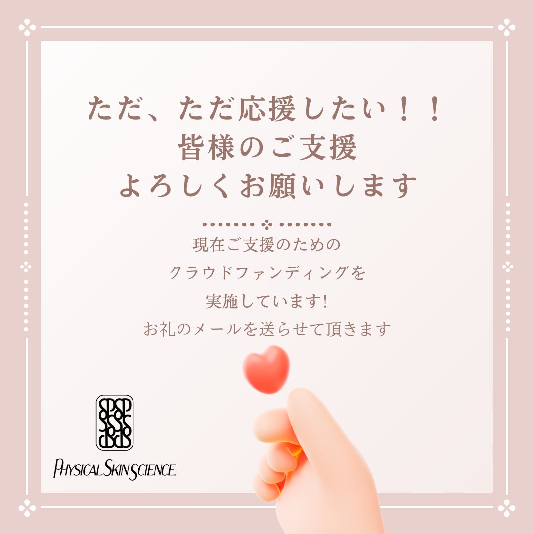 応援していだだきましたら、physical skin scienceが開発したスキンケアをお使いいただき実感していただくことと商品を使ってプロの施術を体験していただきます。