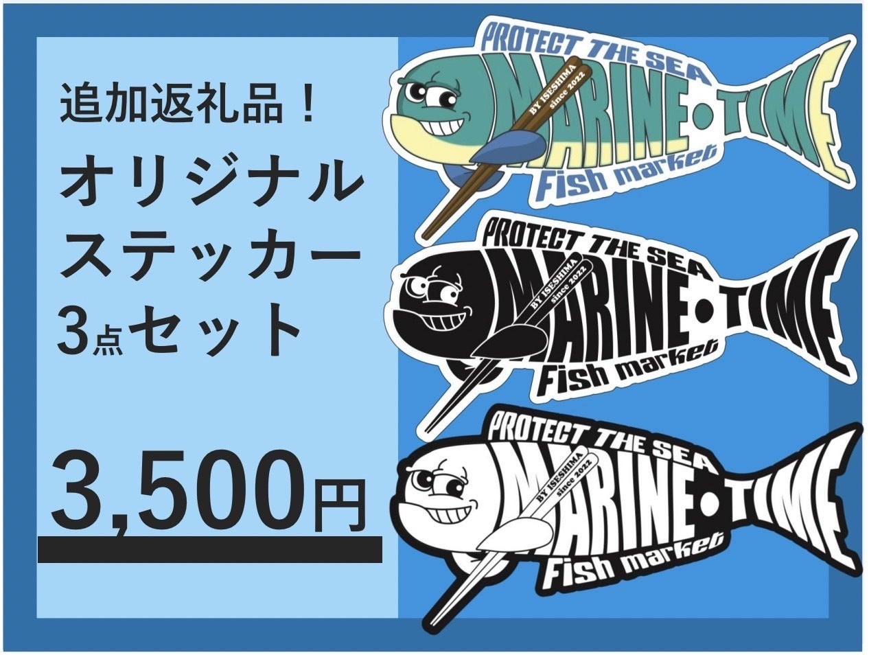 ご支援いただいた皆さん、また、これから支援しようと思ってくださっている皆さん!ありがとうございます! 活動報告、というか、返礼品を追加しました!というご報告です。マリタイムのオリジナルステッカー3点セットです!プロフィール項目にも書いているのですが、私はいま「マリタイム」という屋号で、魚の仲買人として活動しています。 そのマリタイムという屋号に込めた想いは、・魚が泳いでる時を食卓に・海本来の姿を永遠に・何処にいても海を想える人を増やすそれらの祈りをこめ『海の時』マリタイムという名前にしております! この想いに共感してくれる人を増やしたいなと考え、ステッカーをつくることに。でも、想いとか関係なく、「なんかカッケーな!」という感じで気軽に、スマホケースとかにつけてくれたら嬉しいなと思っています!(個人的には、良い感じのデザインにできたなと思っています) これから支援しようかなと思った皆さん、もしくは、もう1度支援しても良いかなと思った方、ぜひ、ステッカーもご検討ください!