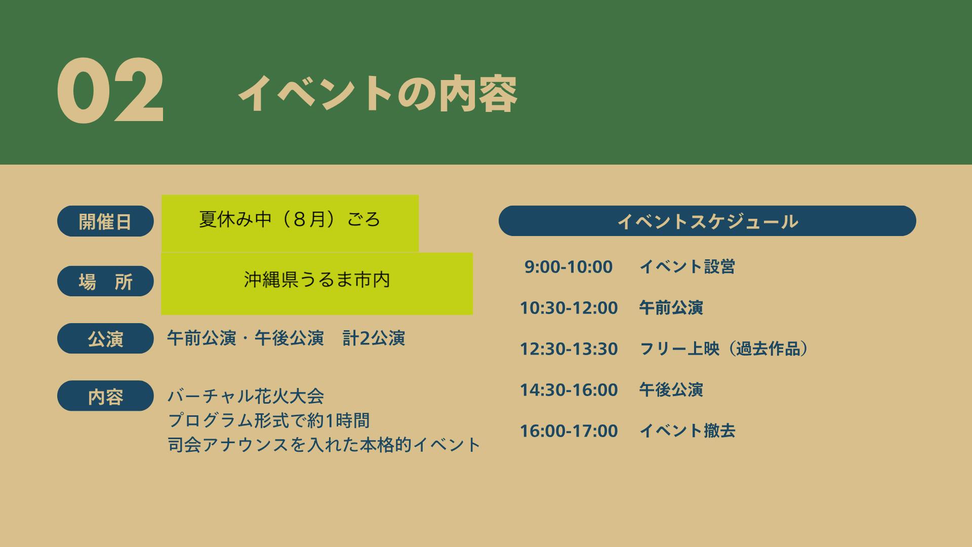 「OKINAWAバーチャル花火大会」の開催趣旨や概要をご説明させていただきます。