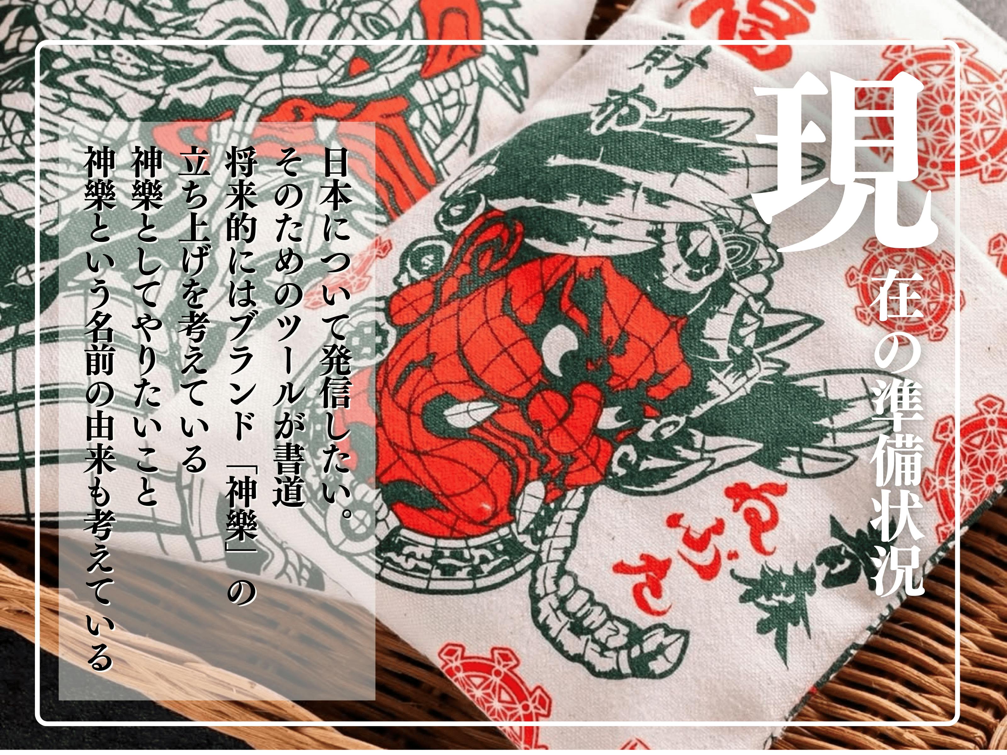 今後、書道家として「神樂」というブランドの立ち上げを目指したいと思っていますが、今回のプロジェクトは今年(2025年)の秋に海外のジャパンフェスティバルに参加することに照準を当てています。