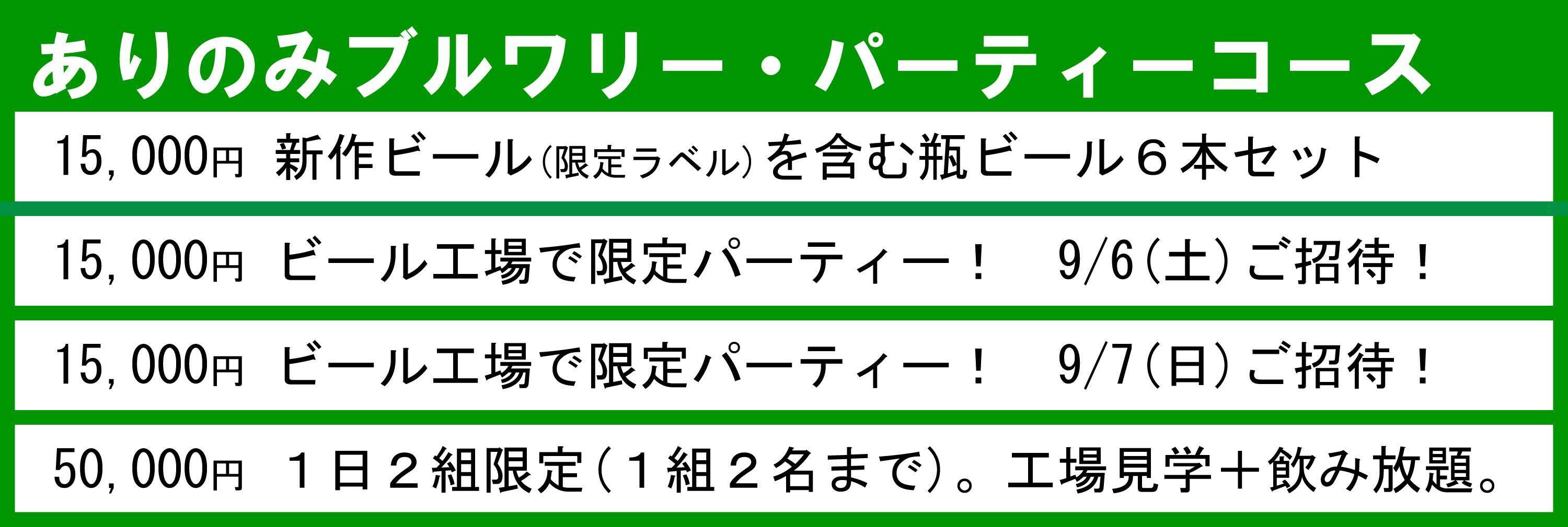 ※限定パーティーに関して、お席が余った場合、ビール工場の開業にあたりご協力いただいた方を招待する可能性があります。