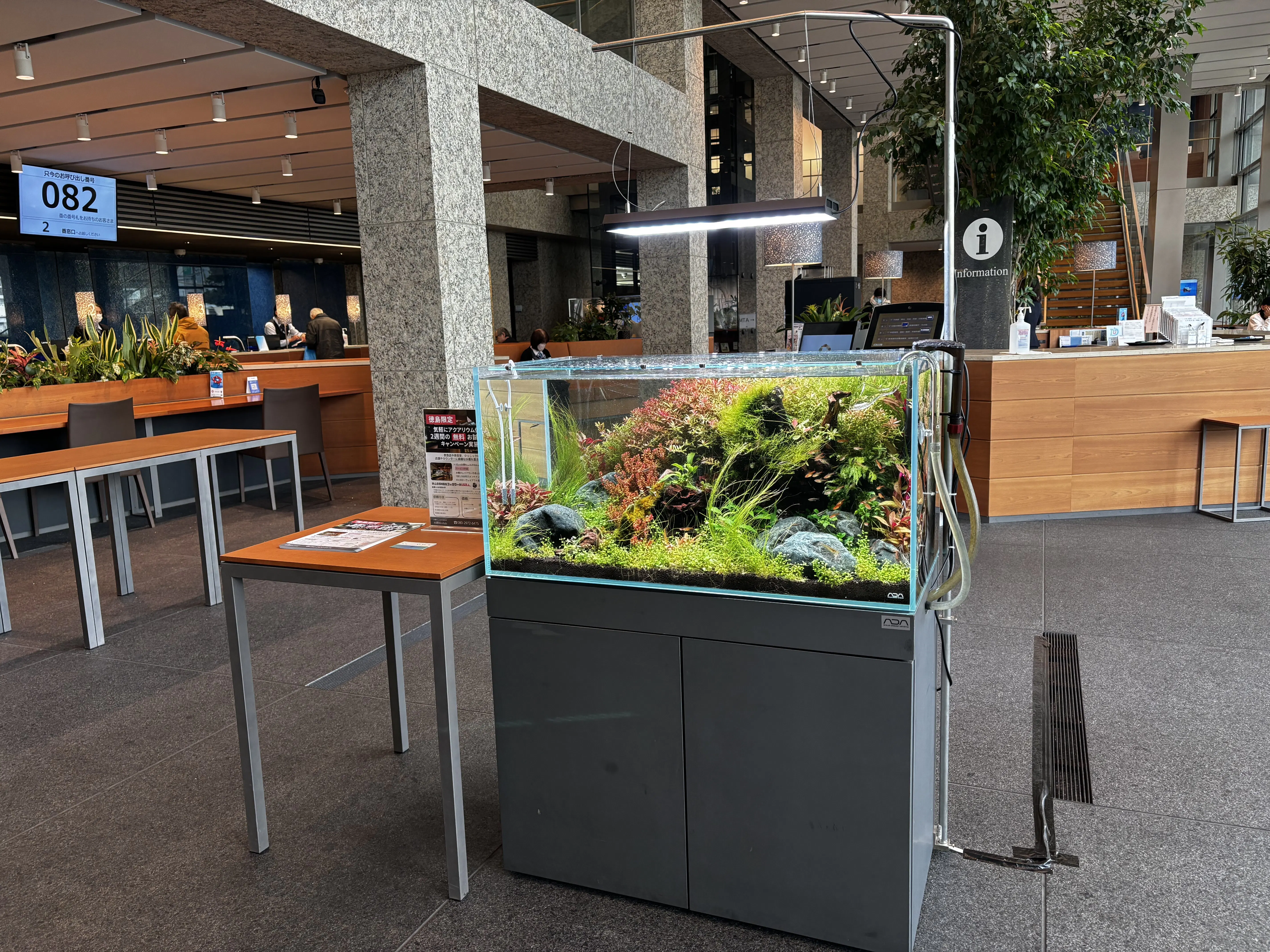 銀行に設置した水槽の様子