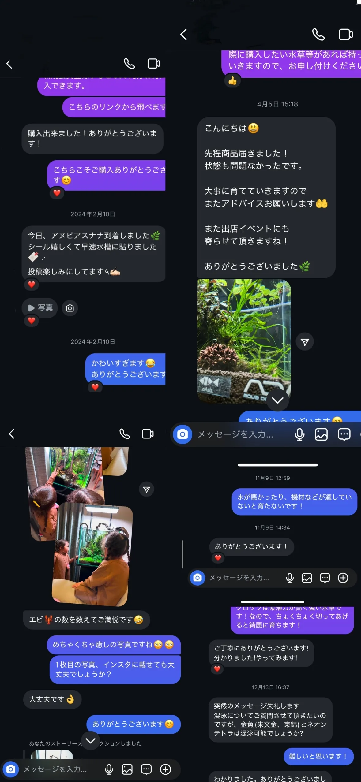 また、水槽や水草を購入されたお客様からDMで質問を頂くことも多く、サポート体制も充実させていきます!