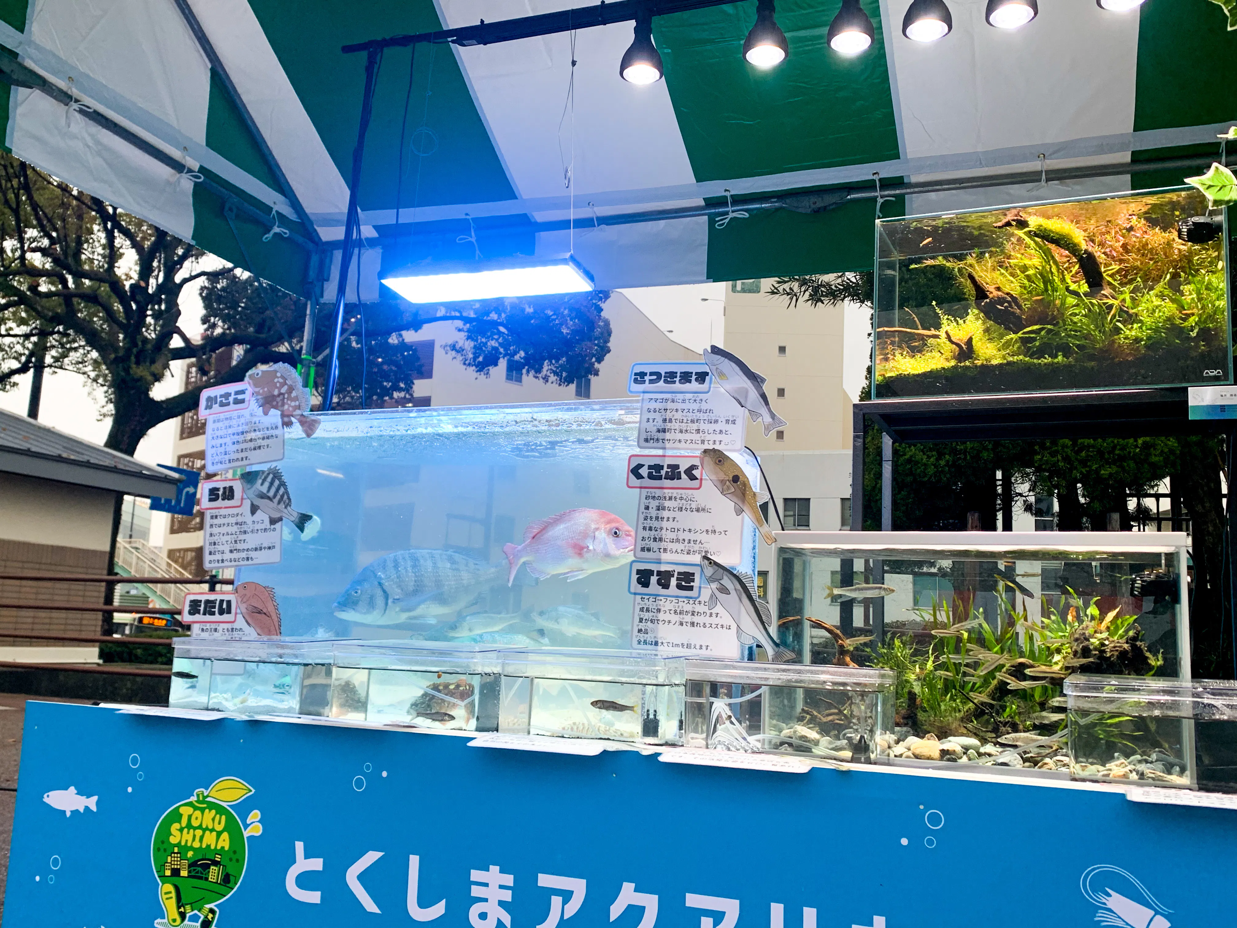 昨年は、徳島マラソン大会にて水槽を設置しました!地元のイベントを通して水槽に興味を持っていただく方が増えてアクアリウム文化が浸透して欲しいという思いも込めて設置しました!