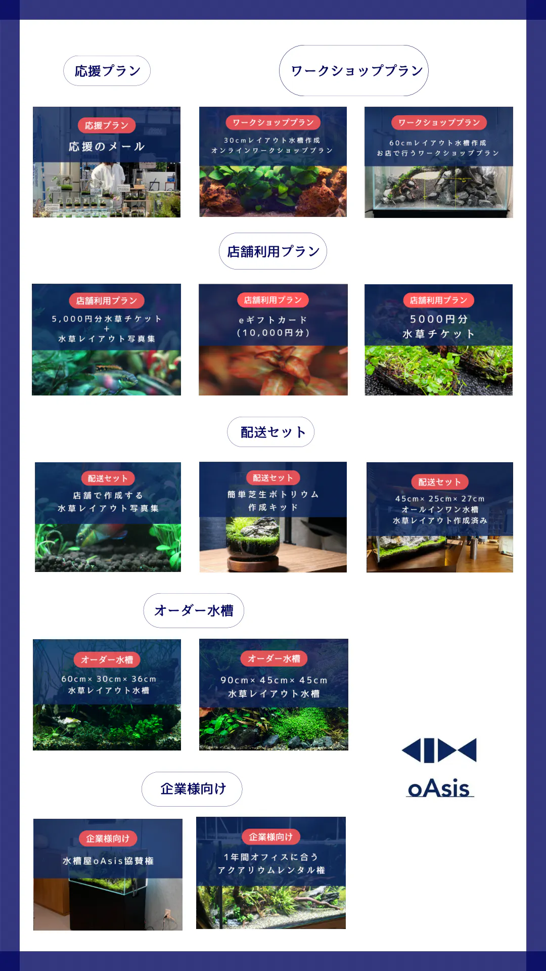 水槽のサイズに合わせて、最適な水草を組み合わせた商品を購入できるようにします!