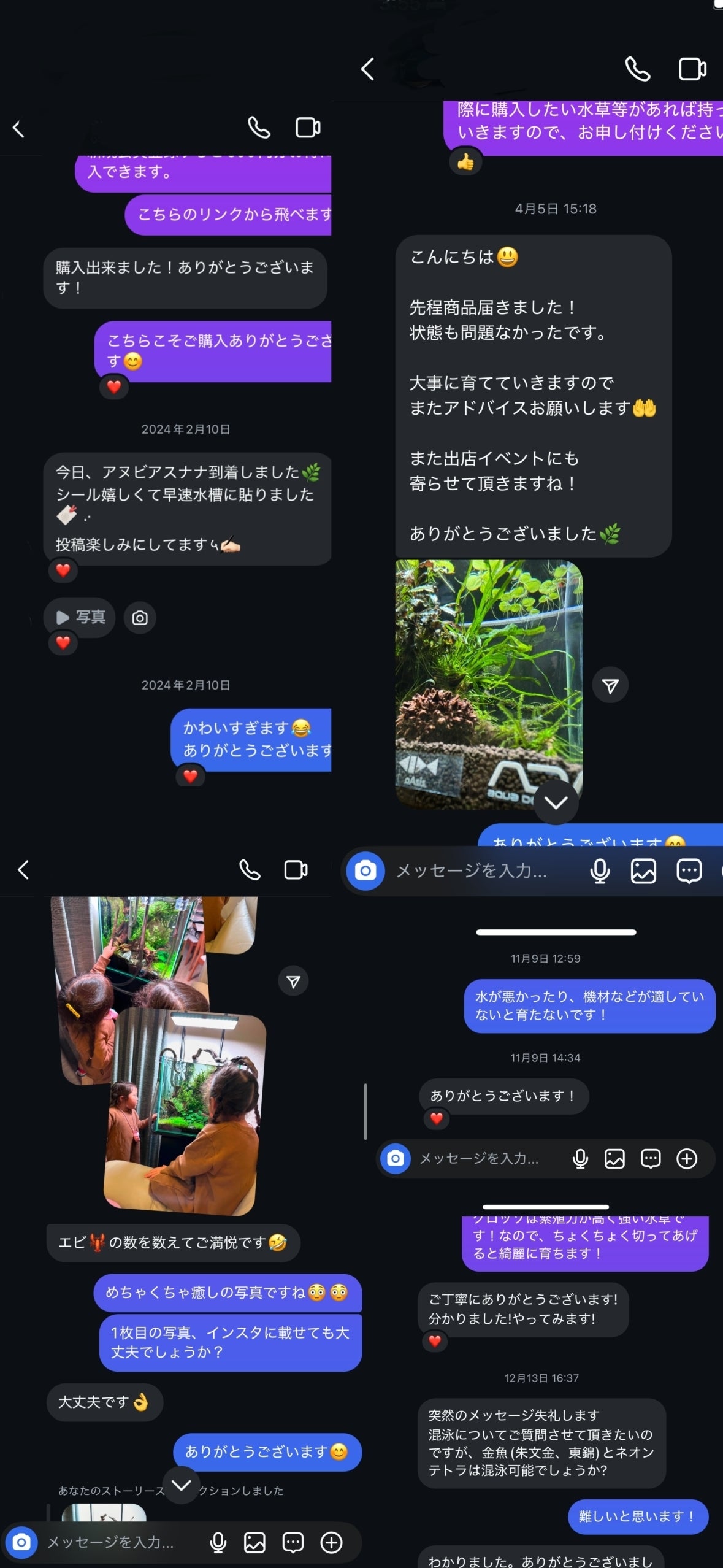 また、水槽や水草を購入されたお客様からDMで質問を頂くことも多く、サポート体制も充実させていきます!
