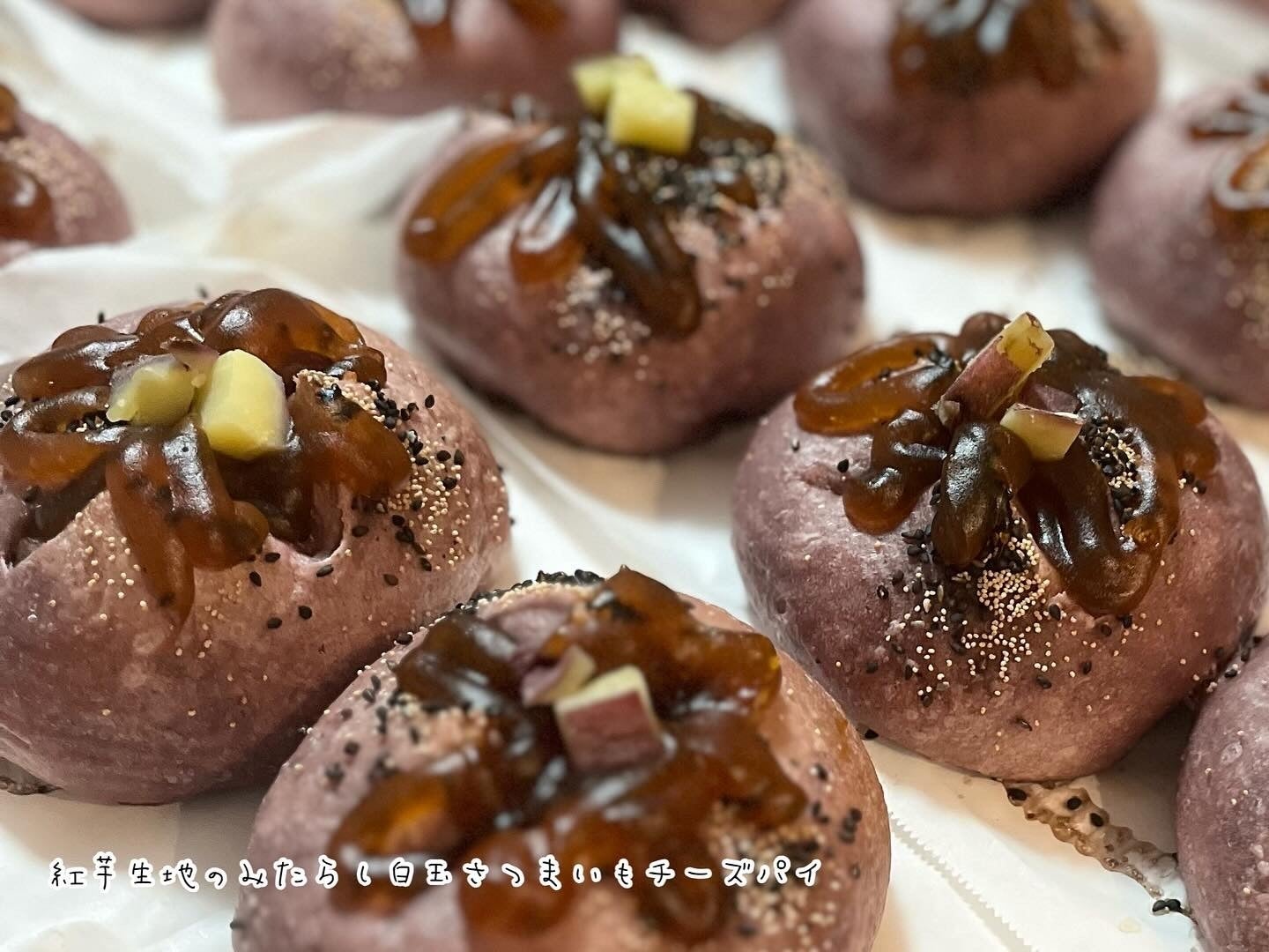紅芋生地のみたらしクリチ白玉焼き芋パイ