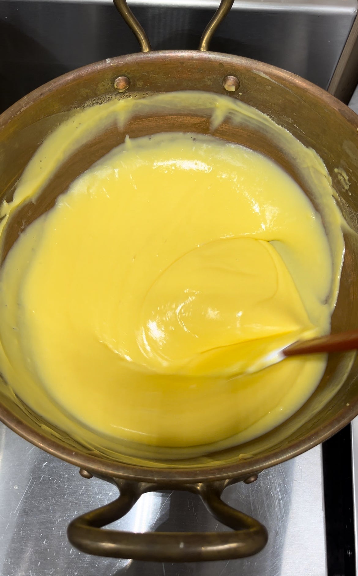 カスタードはぽってりと卵黄たっぷりの濃厚な口当たりのカスタードに仕上げました。餅と一緒に巻き込んでますので必ず温めて食べてください。