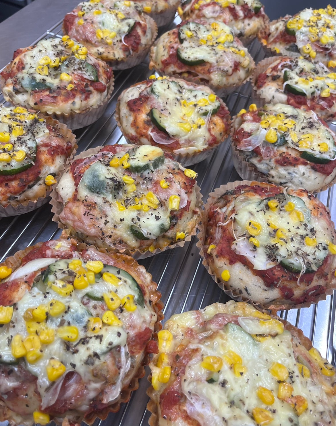 野菜たっぷりのボリューム満点ピザベーグル。生バジルを生地にたっぷり練り込んでます。
