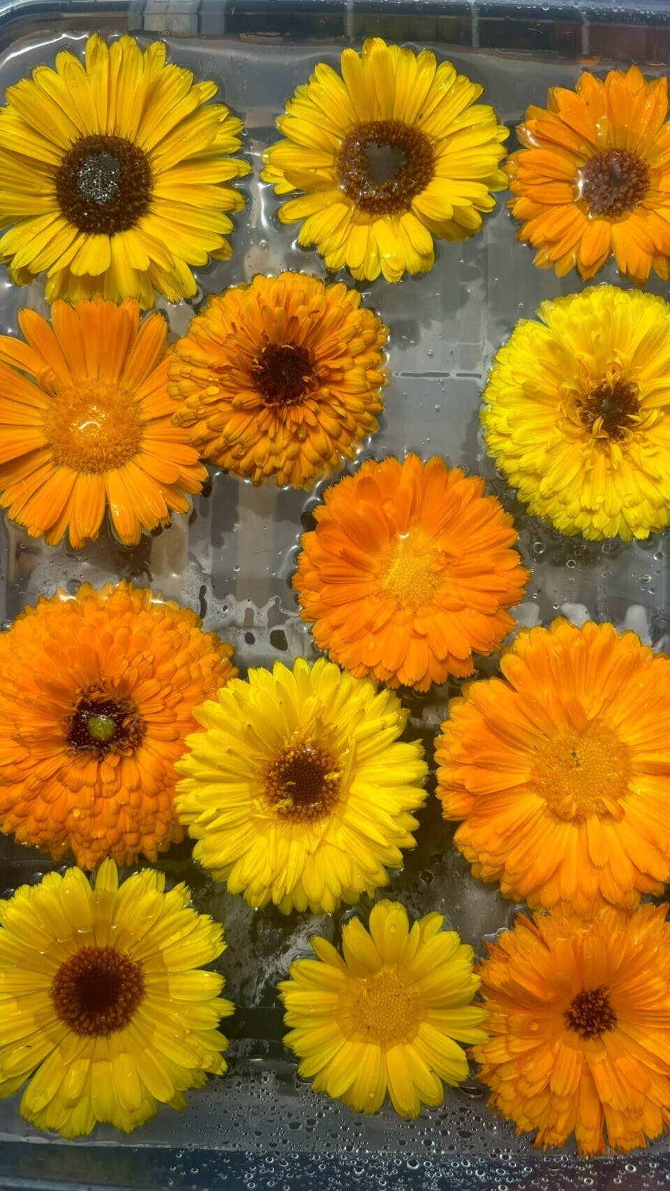 ⇩畑の準備と並行して育てた食べられる花も順調に開花(カレンデュラ)