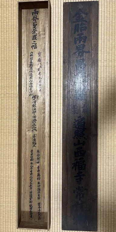 箱書により、宝暦8年(1758)9月21日、活濟上人代に制作されたことがわかります。当時の寄進施主の8人の名前が残っています。