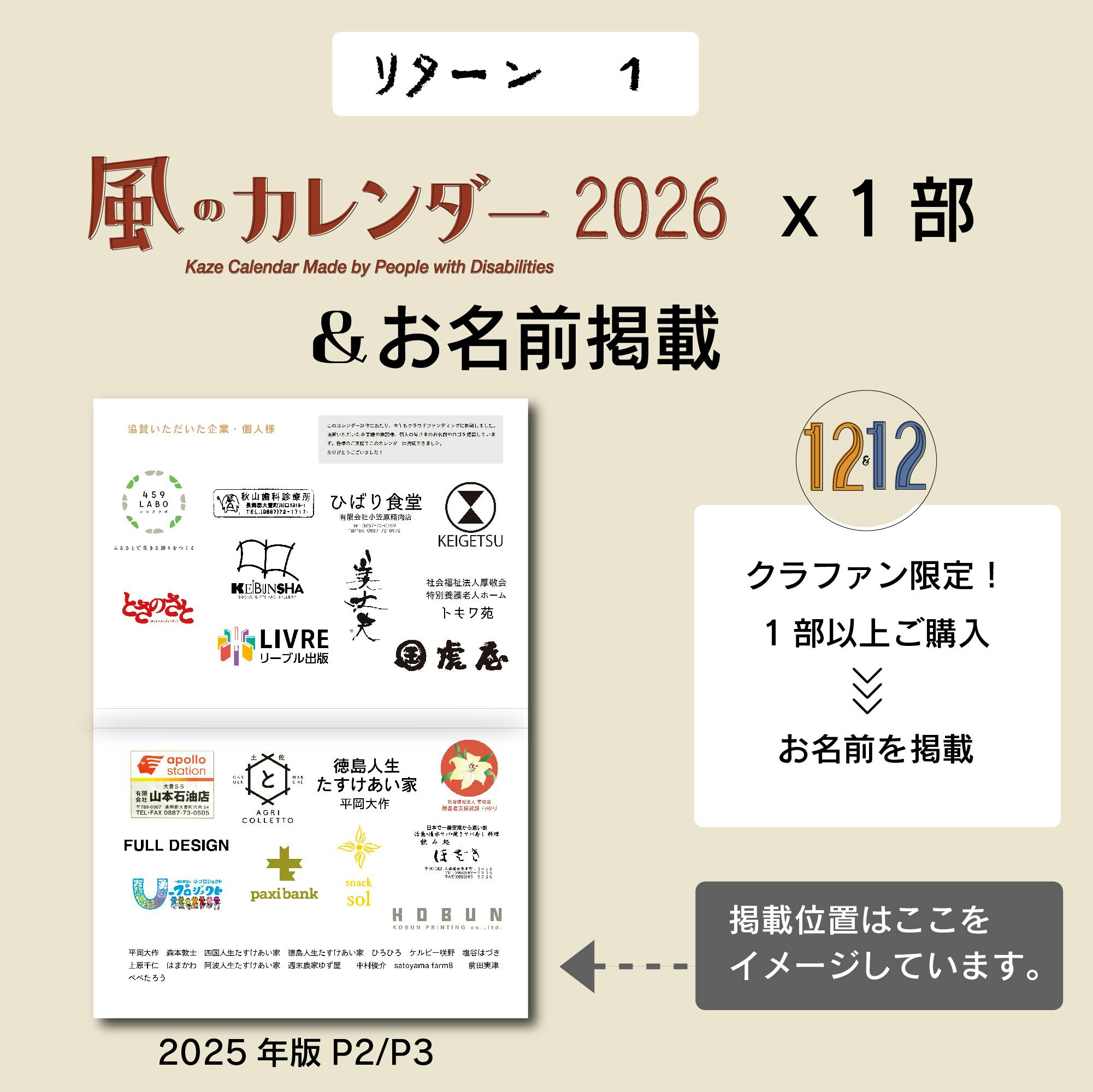 リターン 1 「風のカレンダー2026」x 1部ご購入 & 【お名前掲載】 ¥1,650