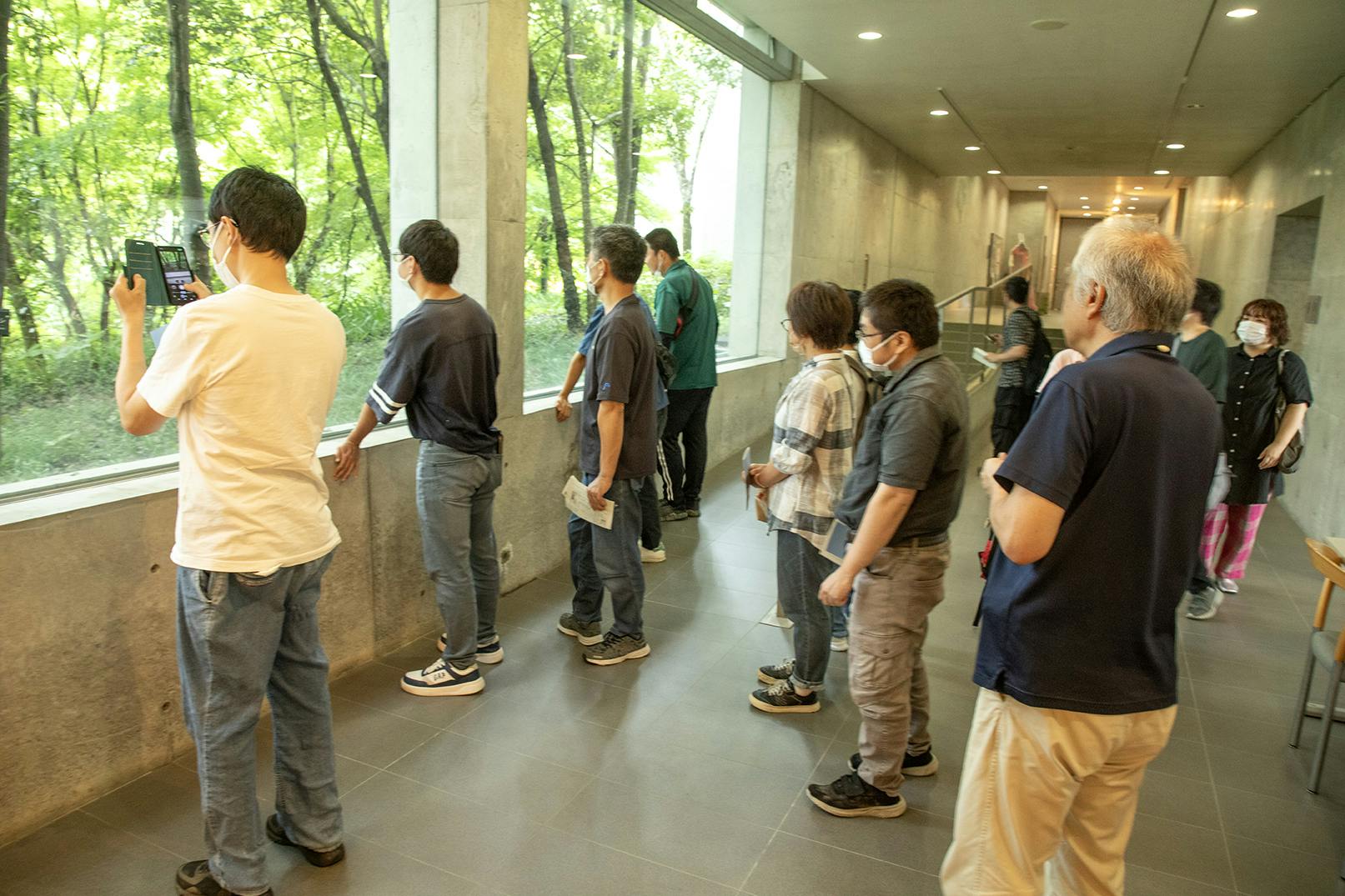 安藤忠雄建築のこの博物館は建物自体がとても素敵で、そういったことも含めて博物館の職員である谷地森さんに解説していただきながら見学します。
