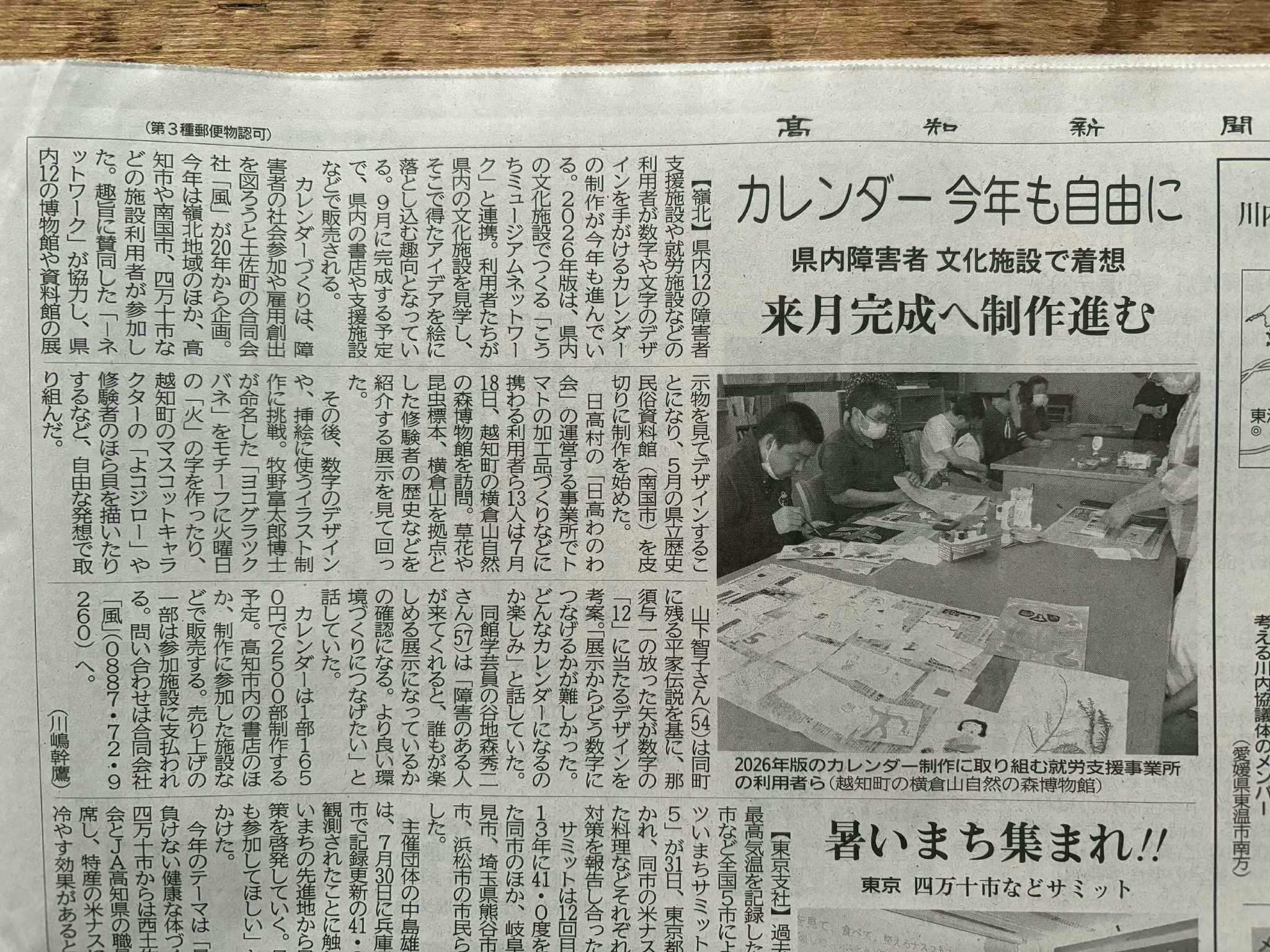 こちらは高知新聞。高知新聞には毎年恒例行事のように風のカレンダーを記事化していただいています。ありがたい限りです。
