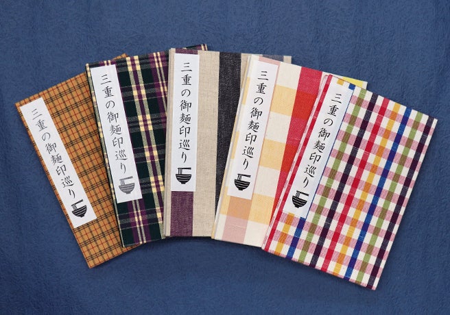 今回の御麺印帳は全部で5種類の色柄から選べます。またサイズは一般の御朱印帳と変わらない横幅12cm×縦幅18cmであるため、通常の御朱印帳としてもご利用いただけます。用紙は墨書きを考慮し裏写りしにくい仕様となっています。