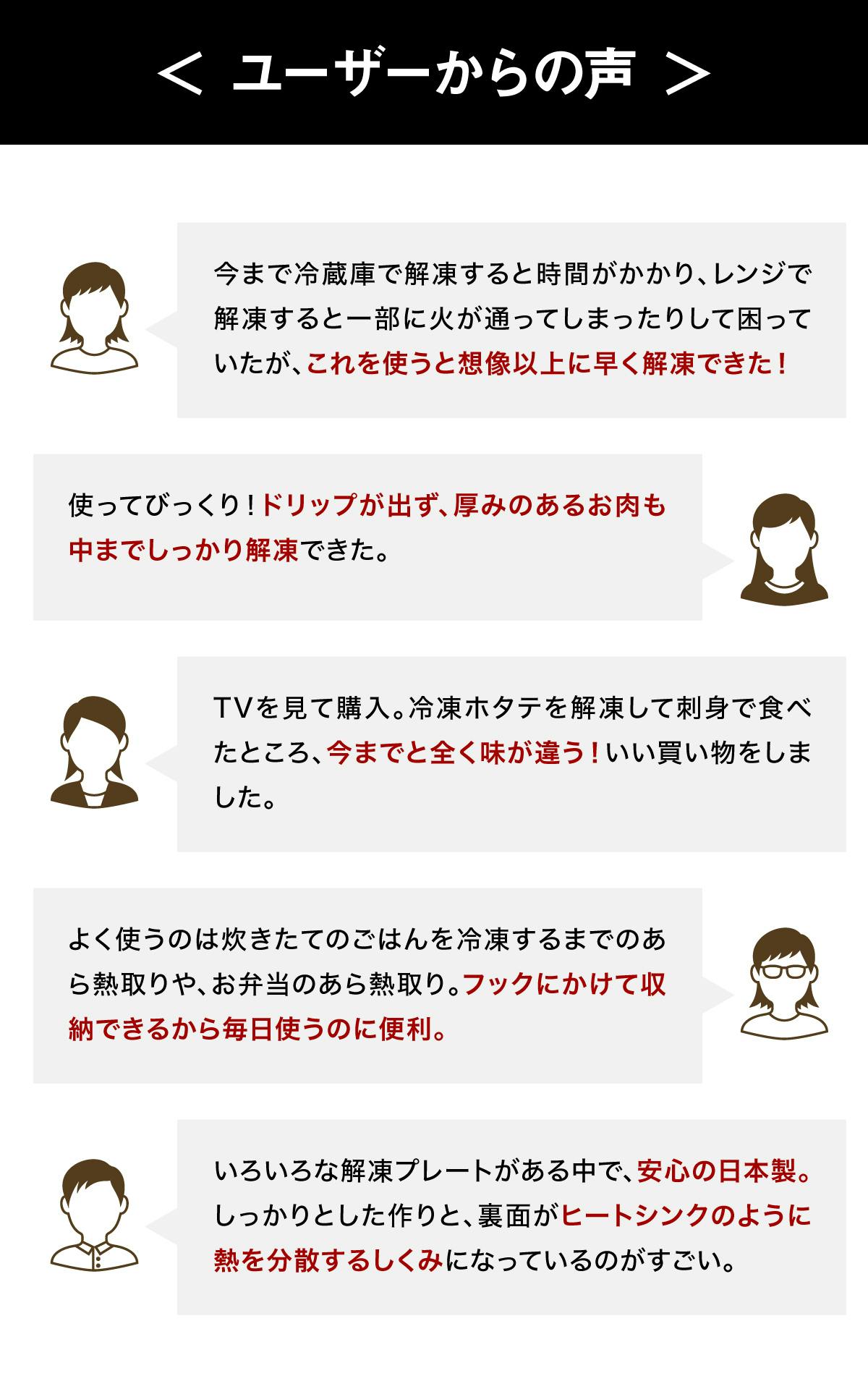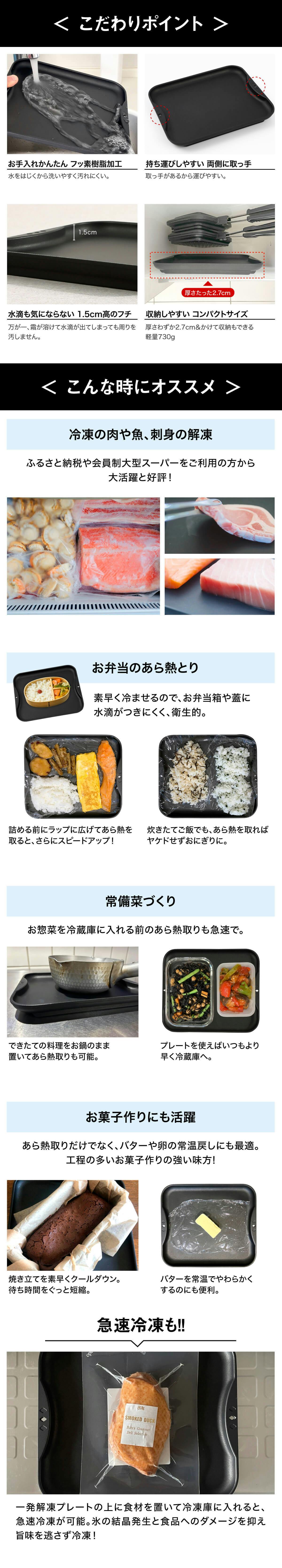 A.プレートに接触する面が大きく、室温が高いほど早く解凍します。分厚いお肉を解凍する際は、途中で裏返すと早く解凍できます。