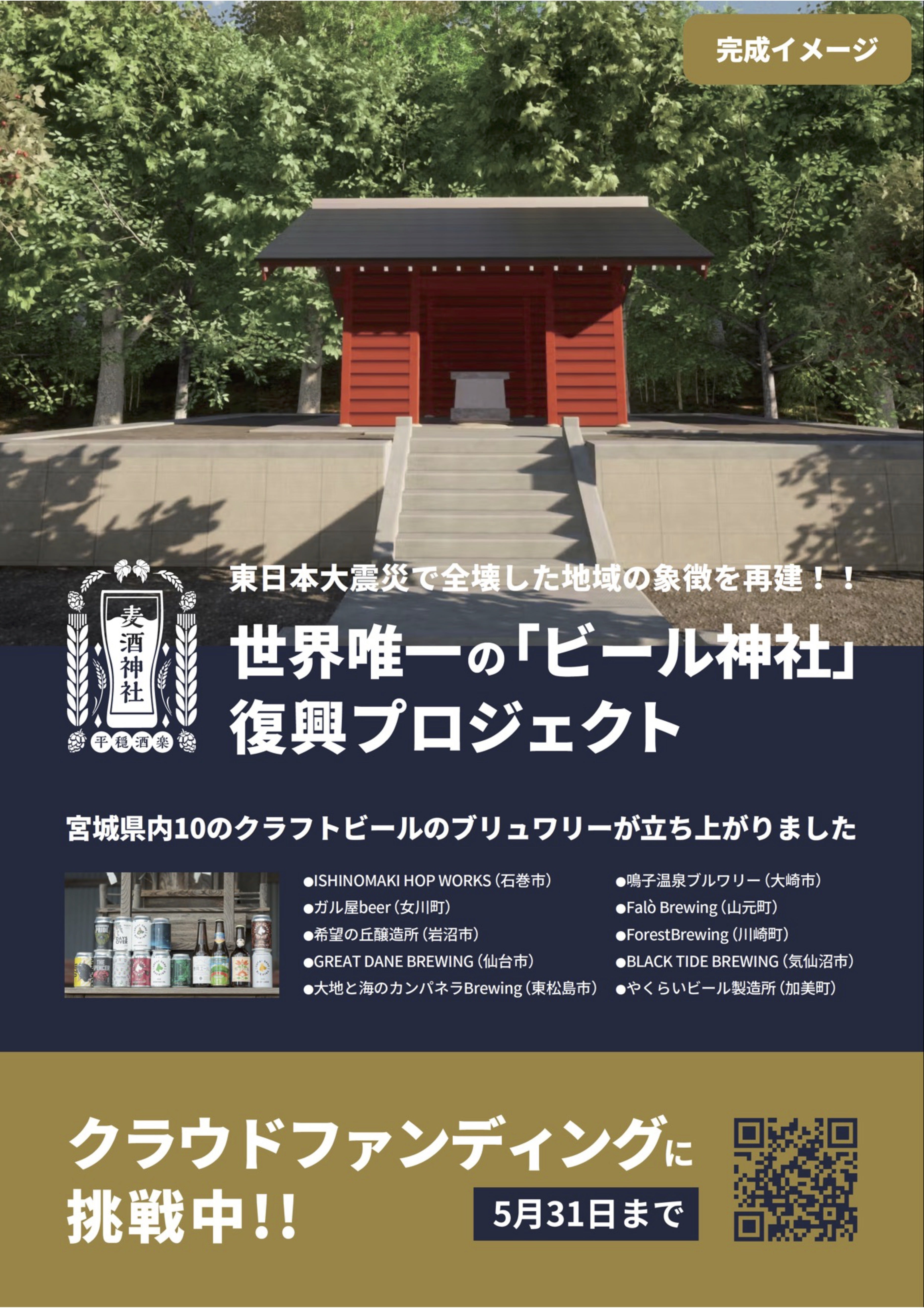 みなさん、こんにちは。ゴールデンウィークはいかがお過ごしでしたか? だんだん暑く感じる日も出てきましたから、ビールの美味しい季節になってきましたね(笑)■オリジナルビールの準備が進んでいます!クラウドファンディングの返礼品のひとつに、MCBA(宮城クラフトブリュワリーズ・アソシエーション)によるオリジナルビールがあります。太平洋に昇る美しい日の出をイメージした「AKEBONO LAGER」(アケボノラガー)です。原料調達中のため最終確定ではないのですが、原料の一部には宮城県産の大麦麦芽を使用する予定です。また、「お清め」や「再スタート」の意味合いを込めるべく、石巻産の海塩も醸造工程で使うつもりです(しょっぱいビールにはなりませんので!)。1つ大きなニュースがあります。大麦麦芽やホップは国産も少しずつ増えてはいますが、その大部分を海外産に頼っているのが現状です。今回、このプロジェクトの話を知ったアメリカの麦芽メーカーBriess社と、ホップメーカーHaas社が、原料を無償提供してくれることになりました!このあたりはさすがアメリカという感じですね。原料にかかるコストを、そのまま再建費用に回すことができるので、石巻ビール神社再建協議会にとって、非常にうれしいニュースです!そして、石巻在住のデザイナーさんと相談しながら、缶ビールのラベルを考案中です。もっとたくさんの案もありましたが、トップにある画像の3案に絞られてきました。それぞれ「御朱印」や「日の出」をモチーフにしています。チームみんなで相談しながら、決めていきます!■5月21日(水)に仙台でイベントを開催します!このクラウドファンディングをアピールしてさらに盛り上げるべく、5月21日(水)に仙台にあるビアレストラン「クラフトマン」さんにて、MCBAメンバーによる「タップテイクオーバー」(お店のビールサーバーをジャックすること)を開催します。当日は5社のブリュワリーからメンバーが集まり、合計8社、14種類ものビールをご提供します!宮城県のビールが揃い踏み!そしてお店からは、売上の一部を今回のクラウドファンディングに投じていただきますので、ぜひ「飲んで応援!」にお力添えください。お時間は17時から、19時頃には各メンバーからのご挨拶の時間も用意しております。来れる地域のみなさん、ぜひ遊びに来てくださいね。クラフトマン仙台のウェブサイトはこちら■残り350万円です!現時点で、216人もの方から4,504,500円のご支援をいただきました。心から感謝申し上げます。とはいえ、目標の800万円までは残り22日で350万円を集める必要があります。みなさん、引き続き情報拡散にご協力くださいませ。どうぞよろしくお願いいたします!
