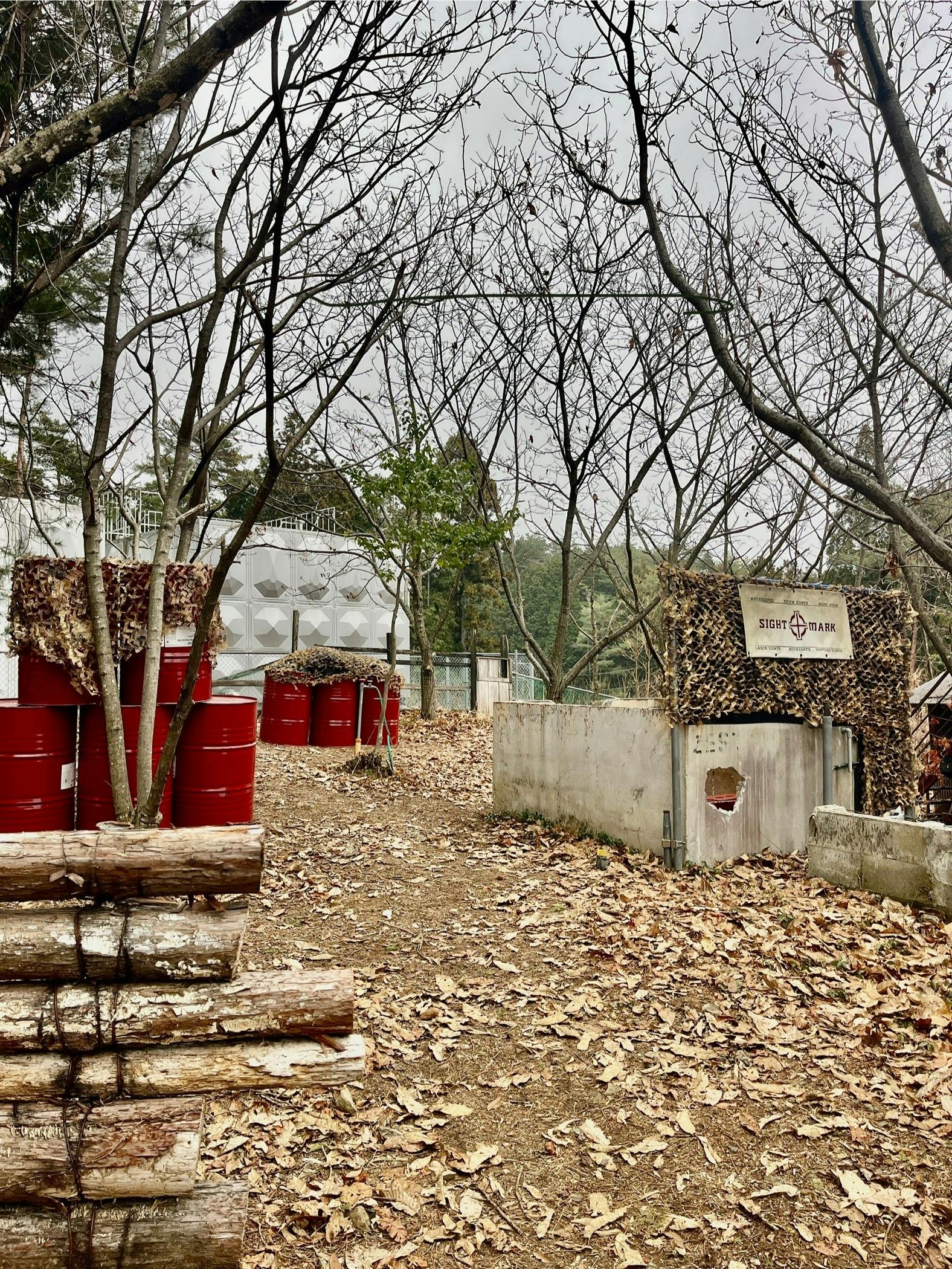 屋外フィールド、仮セーフティエリアは完成して毎週日曜に定例会を開催しております。エアガンショップ様に貼らさせていただいてるチラシをご覧になった方やSNSのフォロワー様も遊びに来ていただき、楽しく遊んでもらっております。