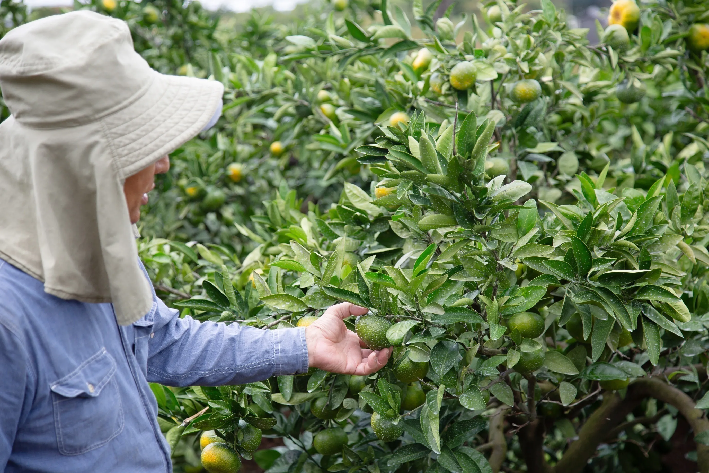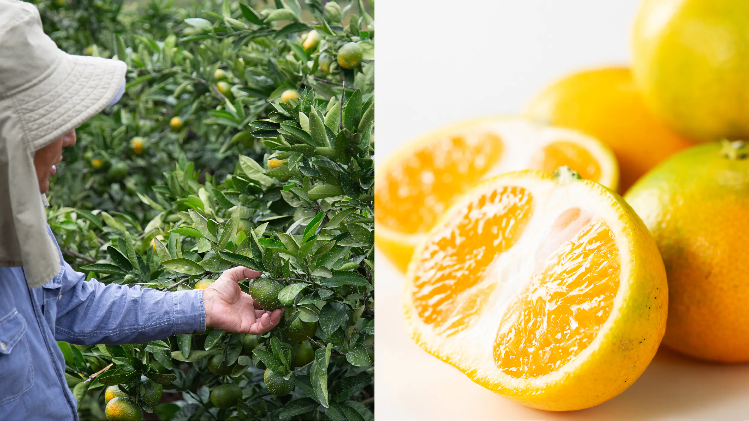 八女やその周辺地域では、様々な種類のみかんや柑橘類が栽培されています。10月頃から楽しめる「早生(わせ)みかん」をはじめ、デコポンなどの品種は春先まで収穫されます。