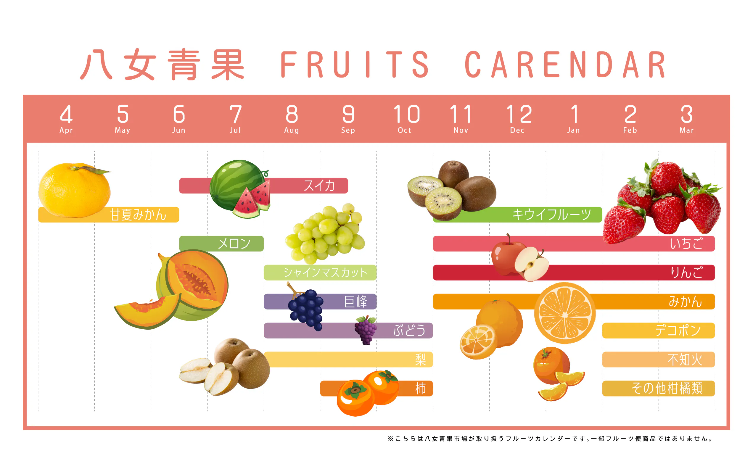 九州中から新鮮なフルーツが集まる青果市場。旬な時期に「旬のフルーツ詰め合わせセット」をオンラインショッピングでご提供いたします。1年を通して旬の時期にお送りする「フルーツ定期便」も予定しています。