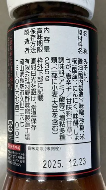 「創業130年真庭市久世の「河野酢味噌製造工場」自家製手作り糀でまろやかな甘みを引き出しました。いつもの焼肉を更においしく、また、これ一本で色んなものが作れる万能だれです。」