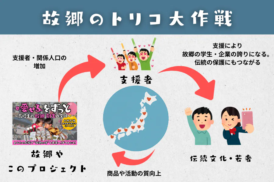 このように利益を活用することで、「故郷のトリコが、内外から増え続ける」という好循環をつくり、これまでにない熱狂と誇りを持った故郷創生を実現していきます。