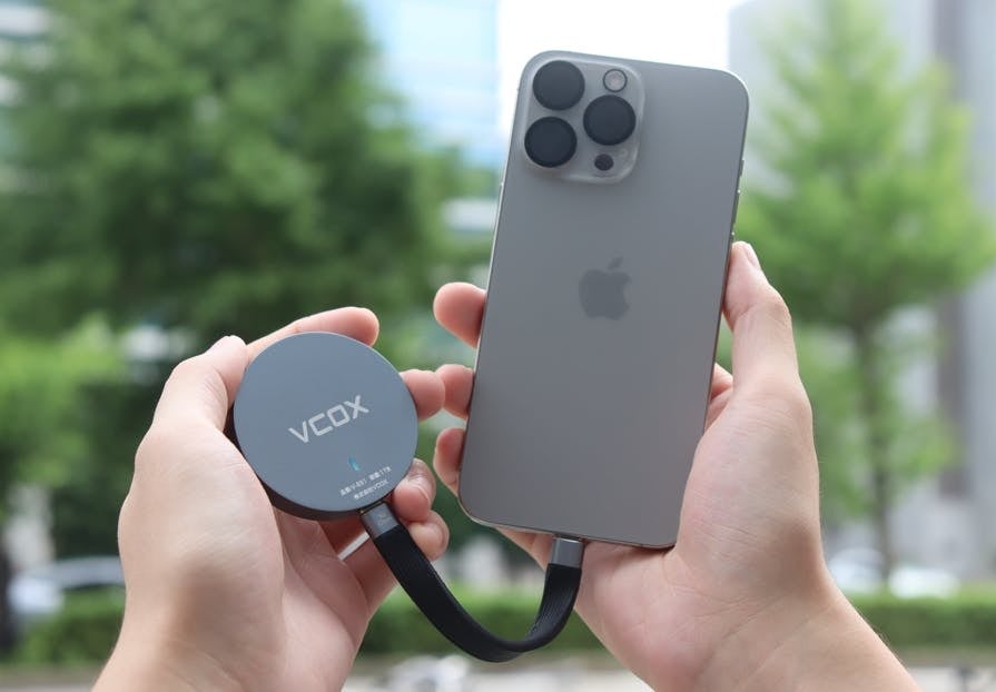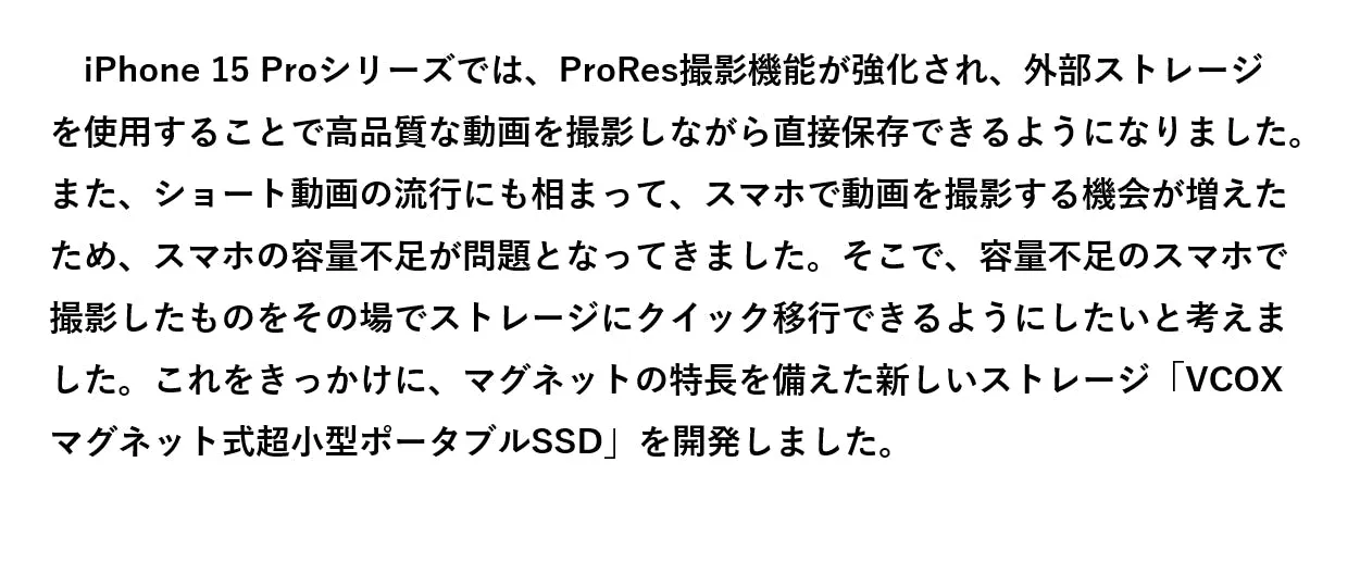 『VCOXマグネット式SSD』は、マグネット部にピタッと取り付ければ、iPhoneと一体化し、Apple ProResビデオを撮りながら直接保存できるSSDです。