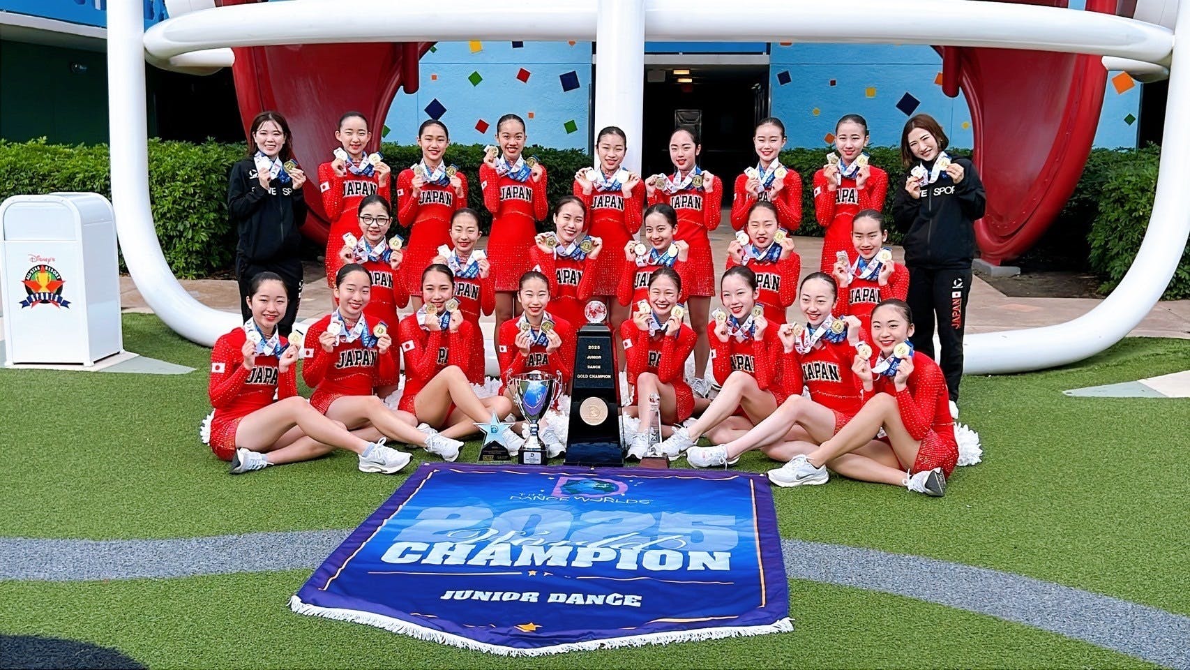 そして、無事にICU世界ジュニアチアリーディング選手権大会及び、IASF DANCE WORLD のニ大会全てにおいて、金メダルを獲ることができました!