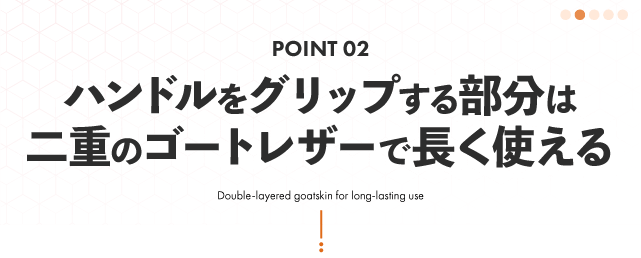 すぐ摩耗したり、壊れてしまうグローブでは意味がありません。軽量で柔らかなゴートレザー(ヤギ革)で着用感は保ちながらも、ハンドルをグリップする部分は革を二重にし、耐久性も高めました。