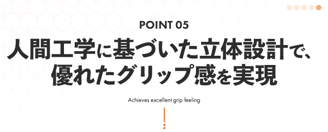 手の形に添わせた立体裁断設計です。グリップしたときに違和感がないよう、調整を重ねてたどり着いたデザインです。