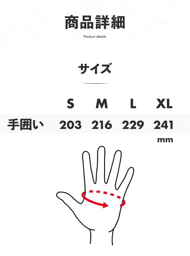 サイズについて。 普段は指の長さからXLサイズのグローブを使用しています。 ですが、【手囲い】を採寸したらMサイズでした。 どのサイズを選んだらよろしいでしょうか?