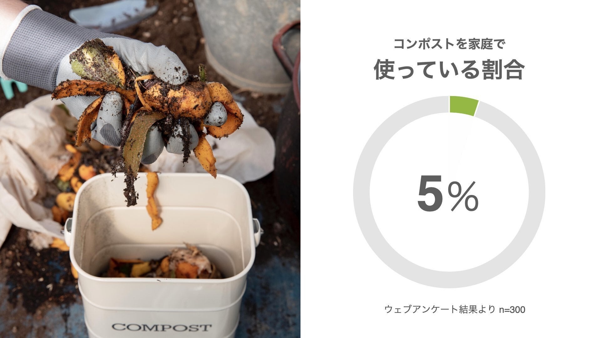 こうした課題を解消する手段としてコンポストがあります。コンポストは生ごみを燃やさず堆肥として土壌に返すことができます。しかしコンポストは普及していません。