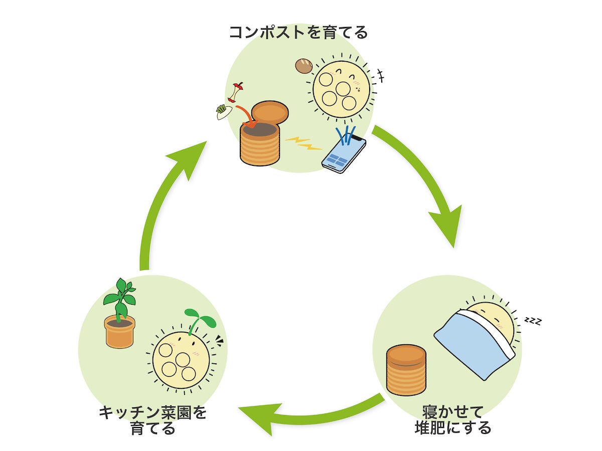 コンポストは微生物の力を借りて生ごみを堆肥にする仕組みです。