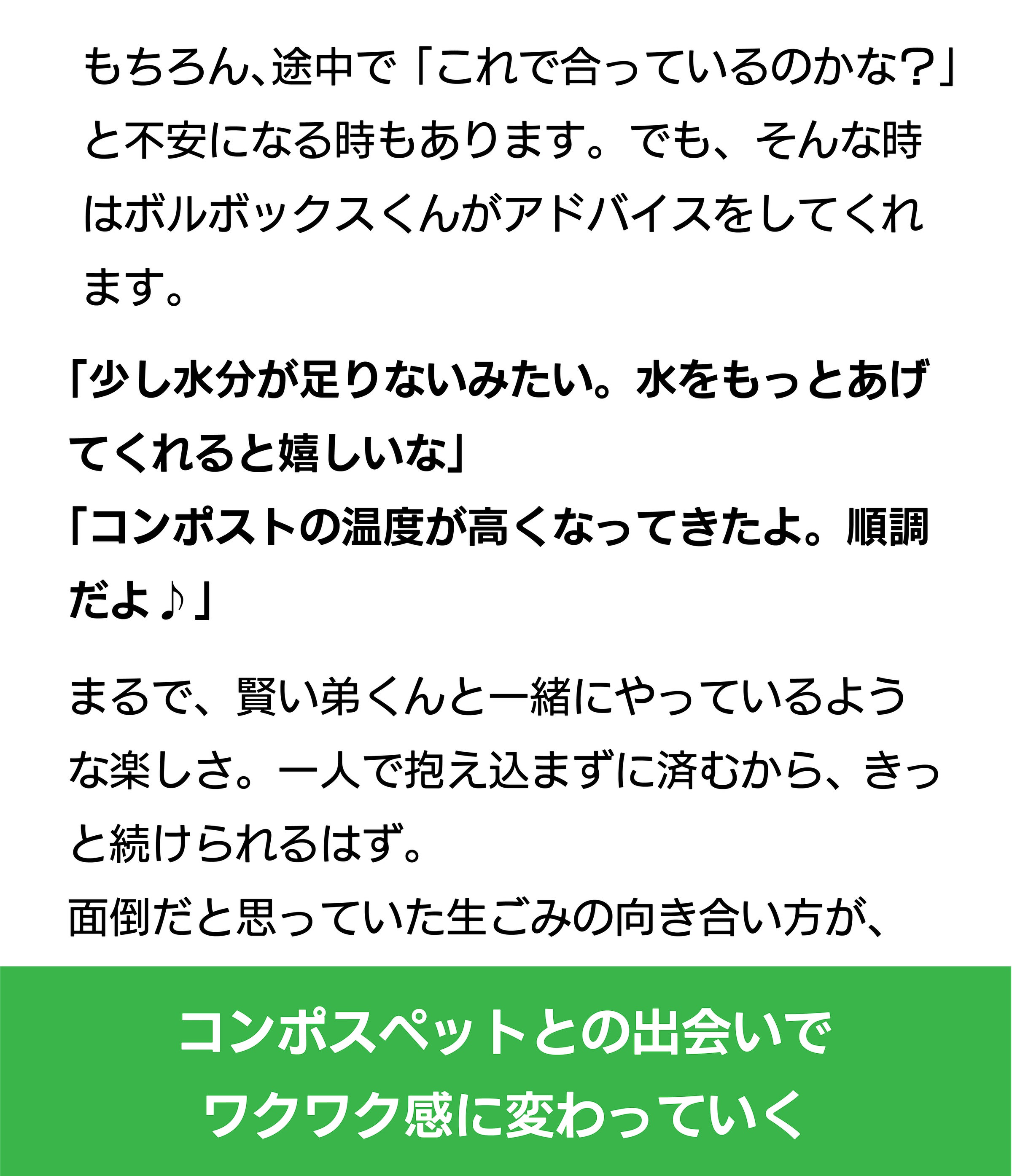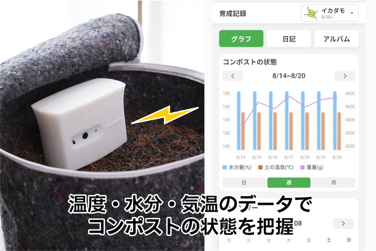 ・センサユニット+アプリでコンポストのアドバイス機能あり
