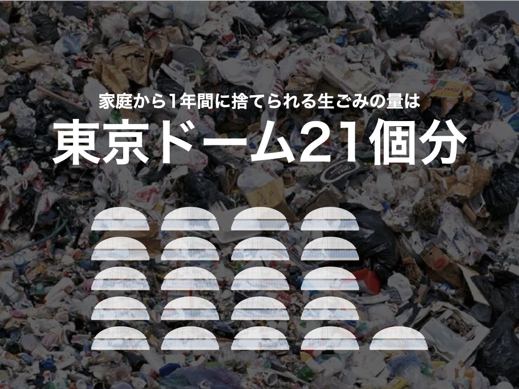 皆さんは家庭から捨てられる生ごみの量をご存知でしょうか。一年間に766万トン、東京ドーム21個分にもなります。(環境省・廃棄物処理技術情報・令和2年度データより算出)