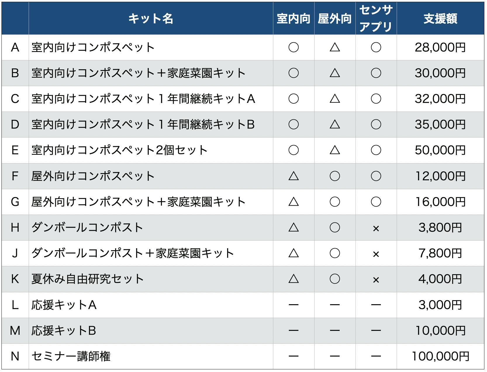 ※ダンボールコンポスト、夏休み自由研究セットにはセンサユニット、アプリは付属しておりません。△印は、屋外向けのものを室内で、室内向けのものを屋外での利用は可能ですが、推奨は致しません。