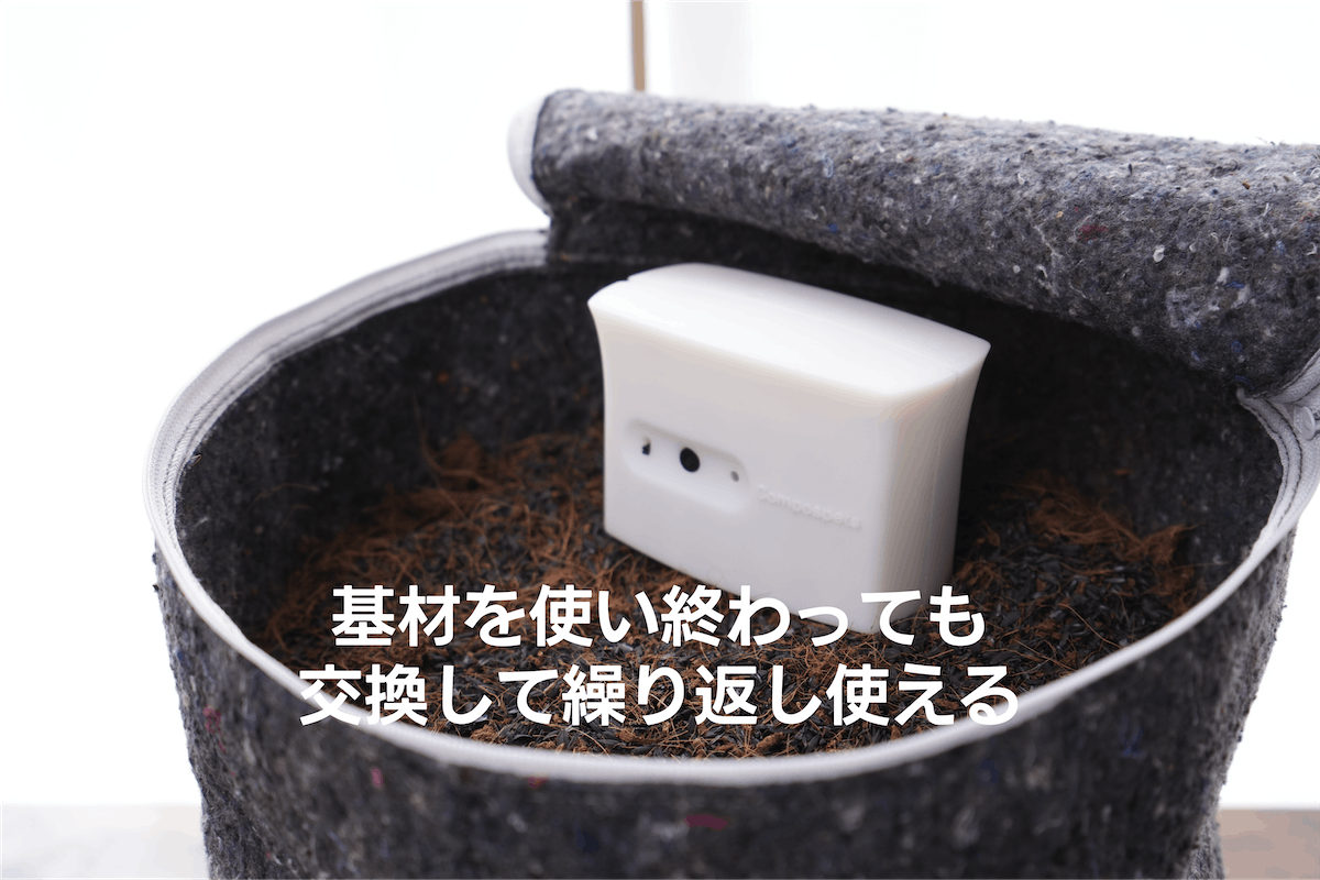 肉や魚を入れなければ、土のようなにおいがするくらいです。室内向けコンポスペットは、このにおいを分解します。
