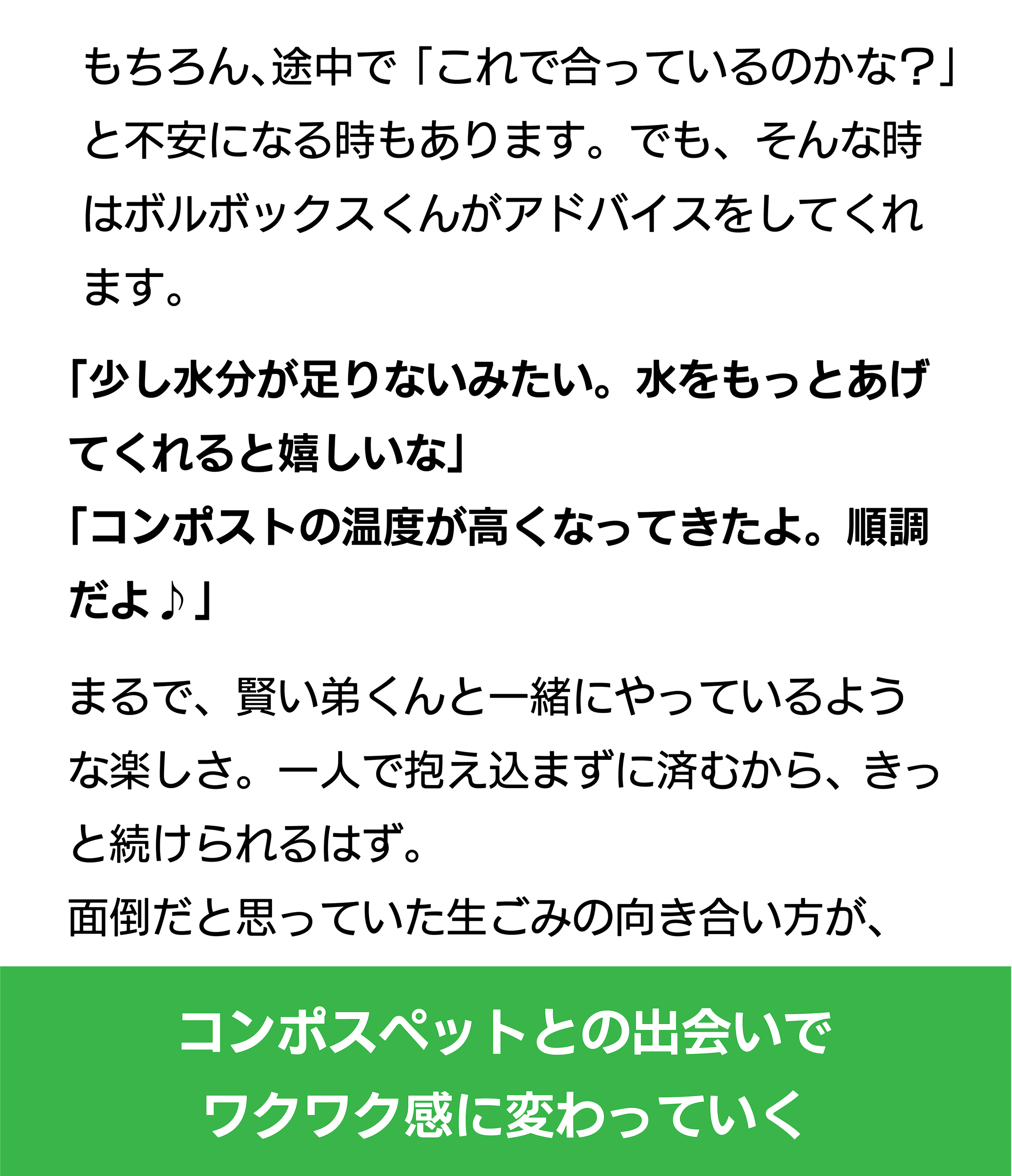 ・センサユニット+アプリでコンポストのアドバイス機能あり