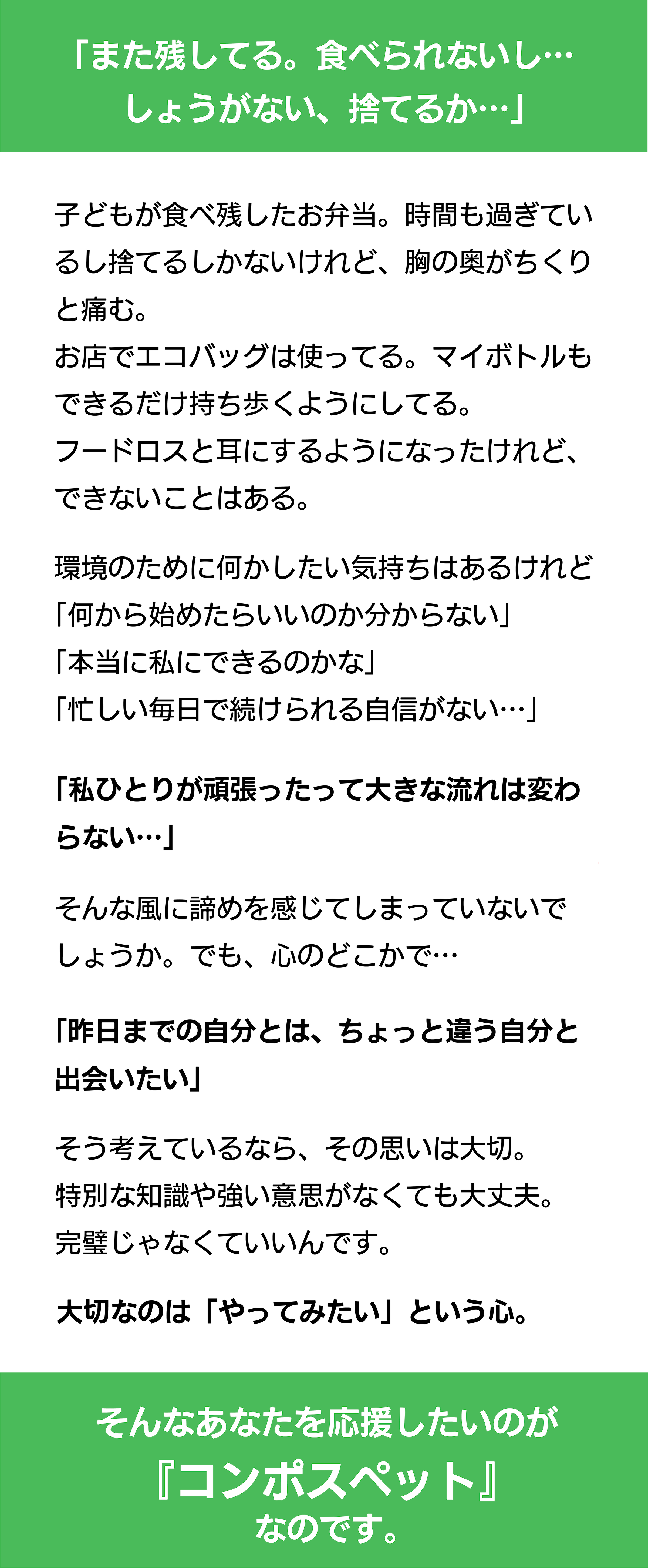 コンポスペットは環境と地域にこだわったモノづくりをしています。