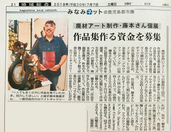 2018/07/07 13:08本日の南日本新聞に掲載していただきました! 丁寧に取材していただき感謝です! 7月7日(13:00)現在 711,000円 のご支援をいただきました。 パトロンになってくださった皆様ありがとうございます! まだまだ皆様のご協力が必要です! SNSなどでシェア、拡散していただけると嬉しいです。 どうぞよろしくお願い致します! もっと見る