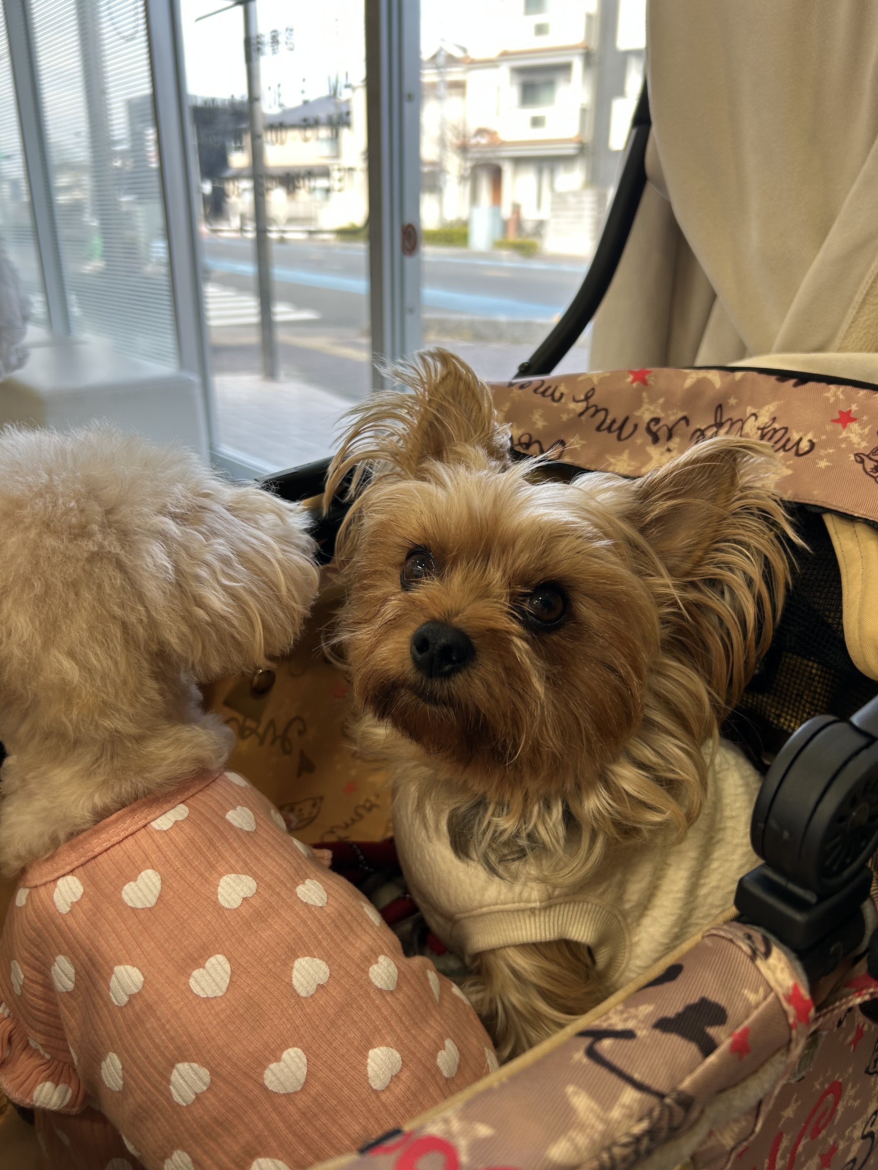 先程ヨークシャテリアのペチコを病院にお迎えに行って来ました。