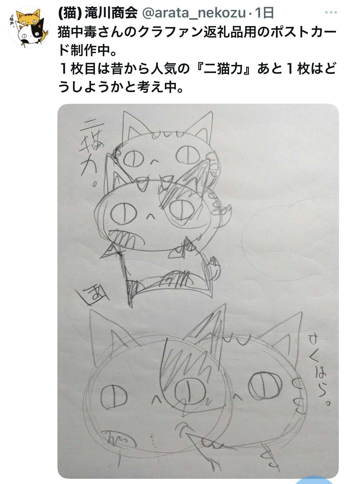富山の猫絵師滝川あらたさんより、猫中毒クラファン返礼品用ポスカラフ到着。ここからどう展開していくのか楽しみですね。