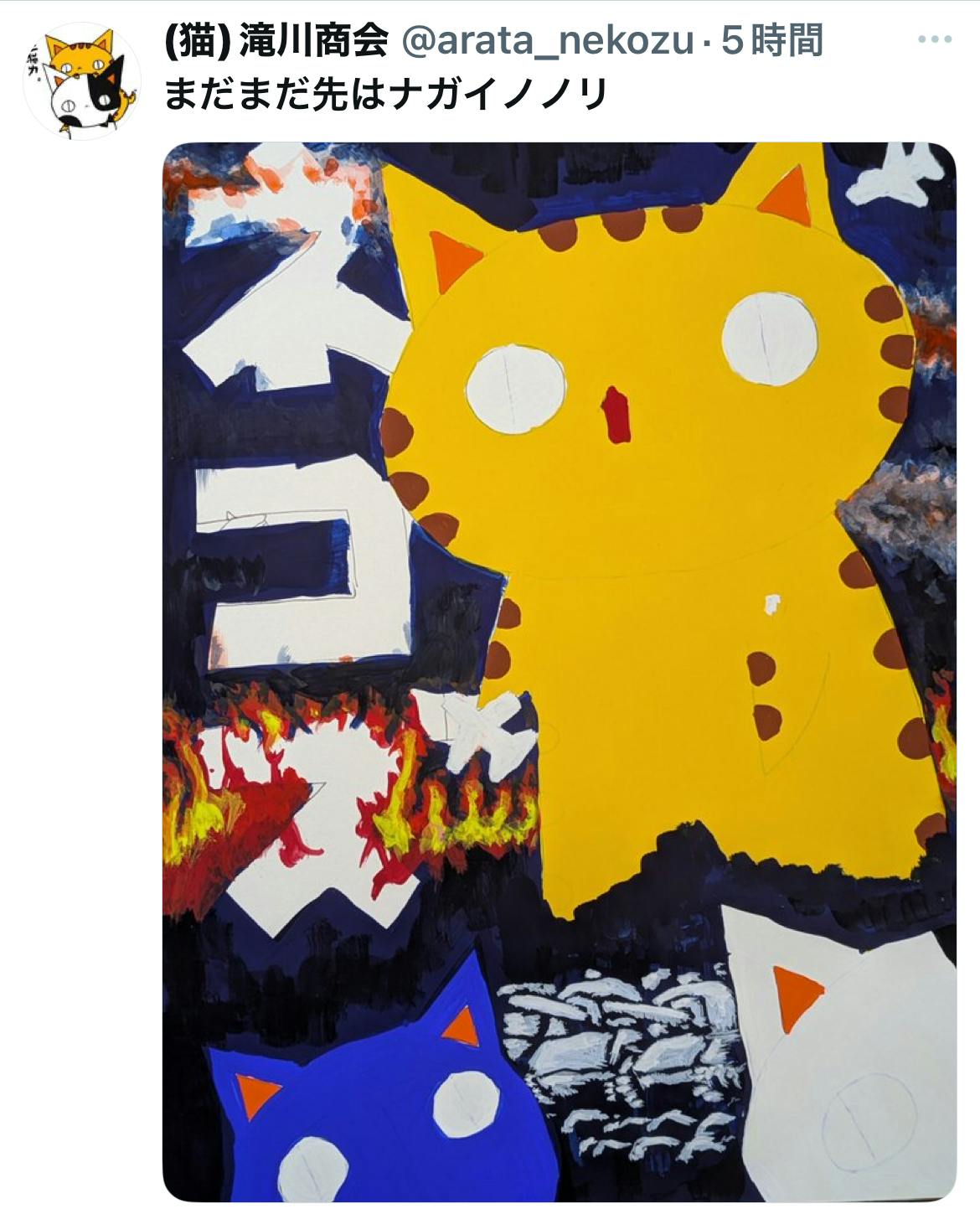 富山の猫絵師あらたさんから、リターン品のオリジナルポスカイラスト(左側2つ)完成品到着しました。(プロフィールボードとオリジナル袋も同時着です)