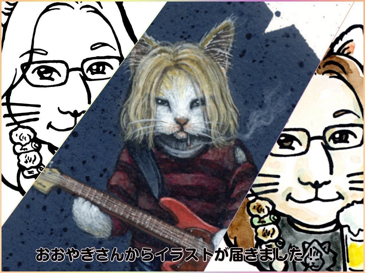 おおやぎえいこさんから、リターン品のオリジナルポスカ用イラストのデータが到着しました。(画像真ん中のイラストです)