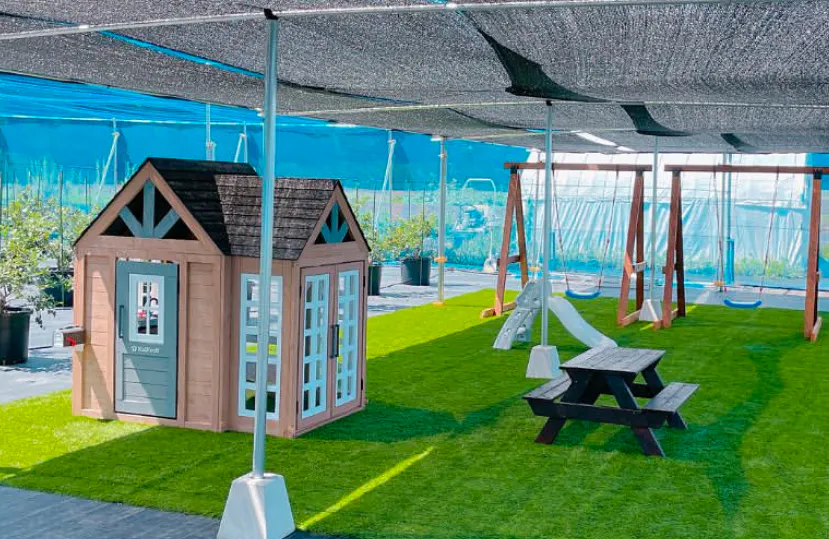 その下で休憩テーブルやキッズスペースにすれば雨が降っていても休憩スペース、キッズスペースのご利用が可能となります。