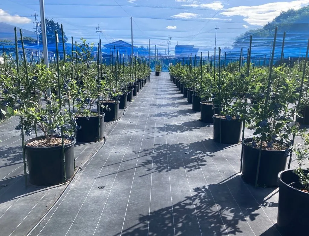 またブルーベリーエリアは全面防草シートと足場はフラットになっています。